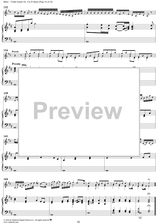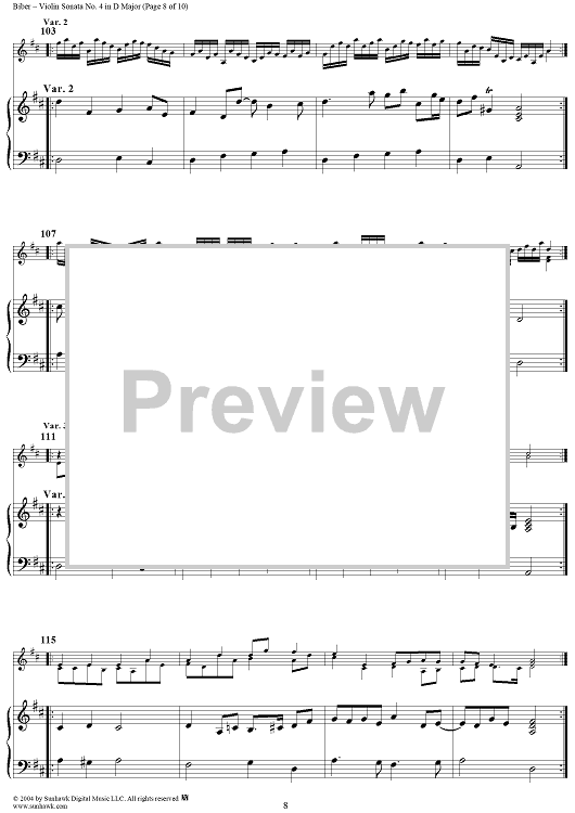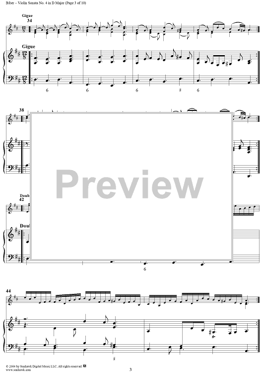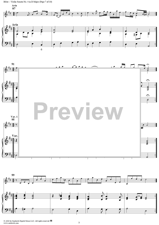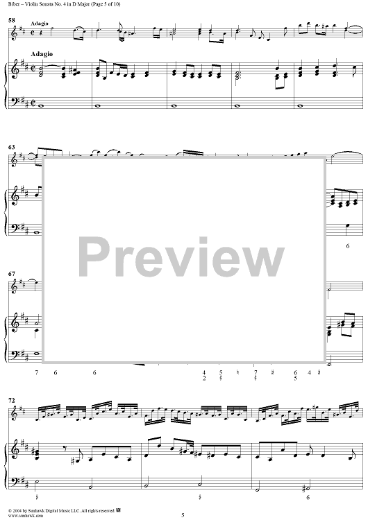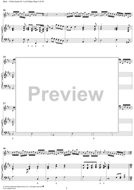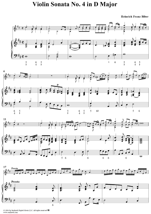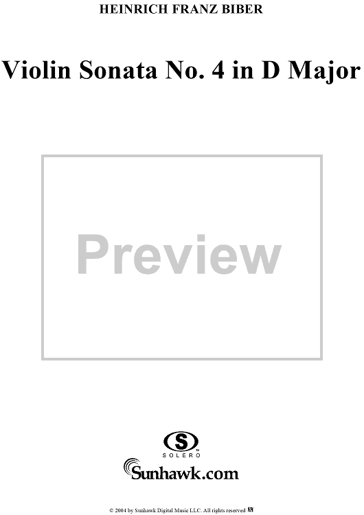 Digital Sheet Music for Violin Sonata No. 4 - Piano Score by Heinrich Franz Biber scored for Violin/Piano; id:298073