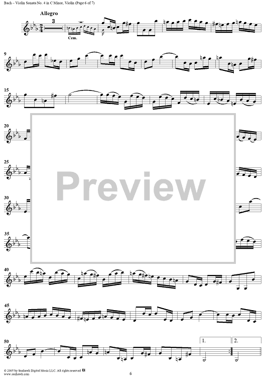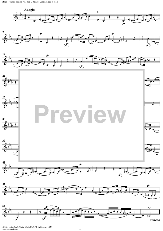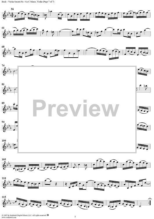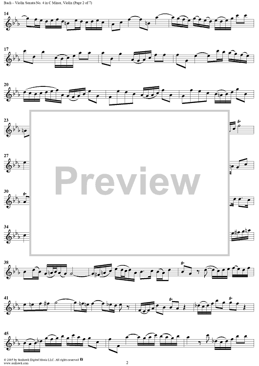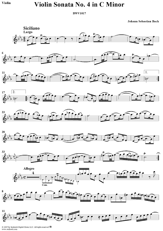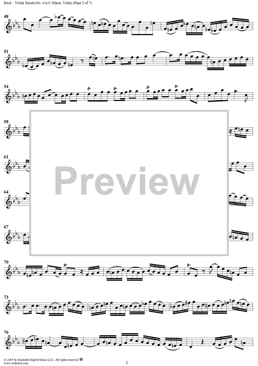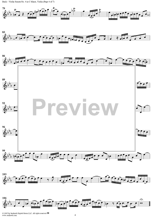 Digital Sheet Music for Violin Sonata No. 4 - Violin by Johann Sebastian Bach scored for Violin/Piano; id:309586