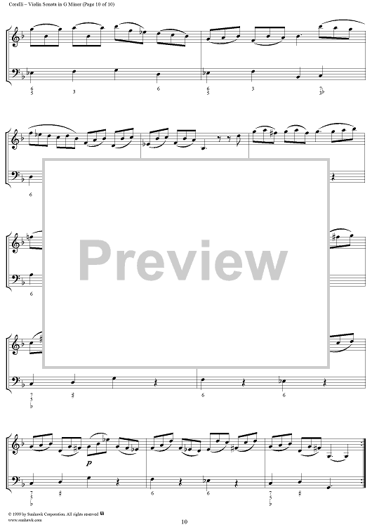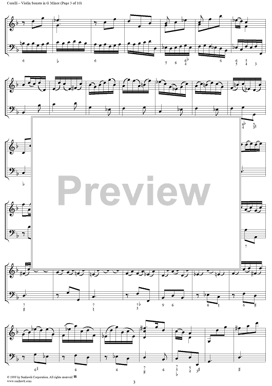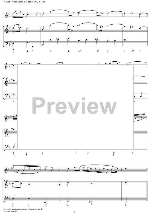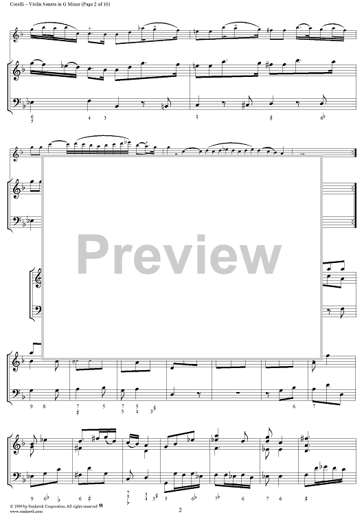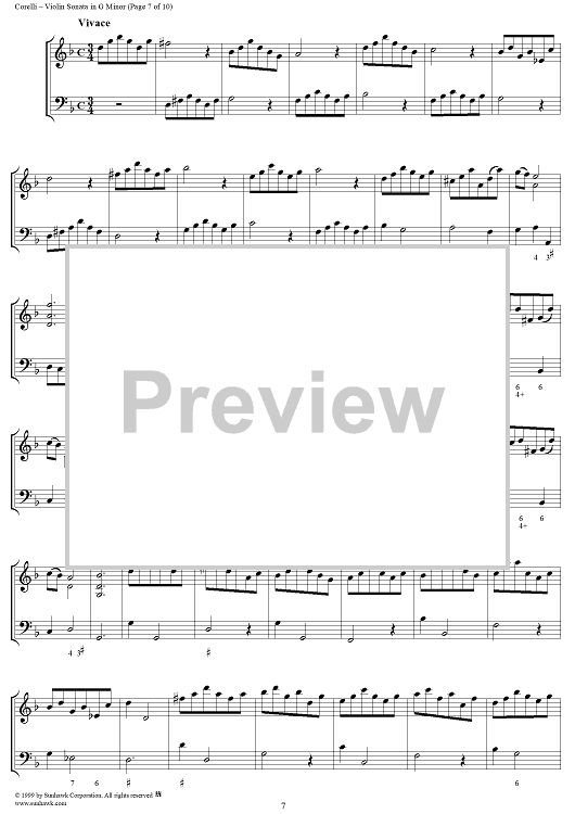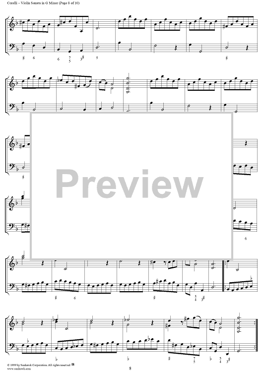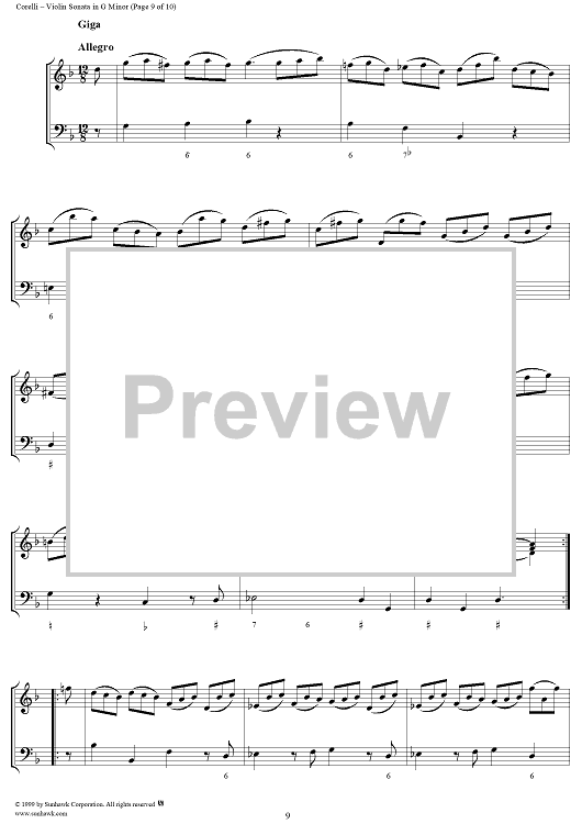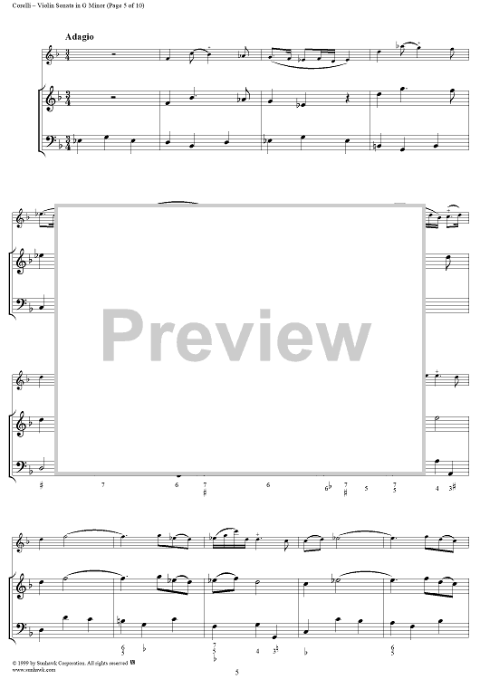 Digital Sheet Music for Violin Sonata No. 5 - Piano Score by Arcangelo Corelli scored for Violin/Continuo; id:272618