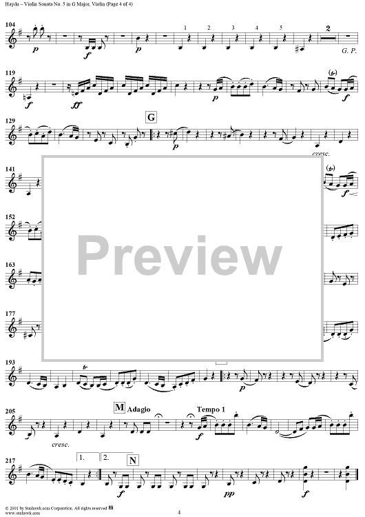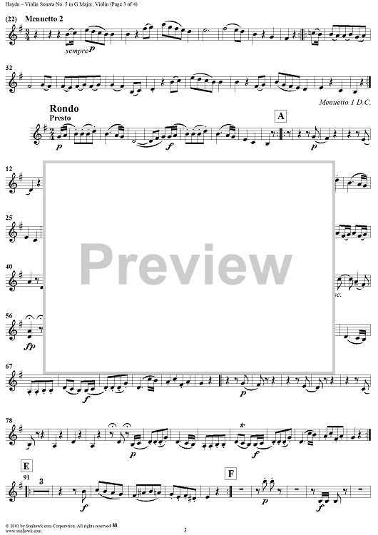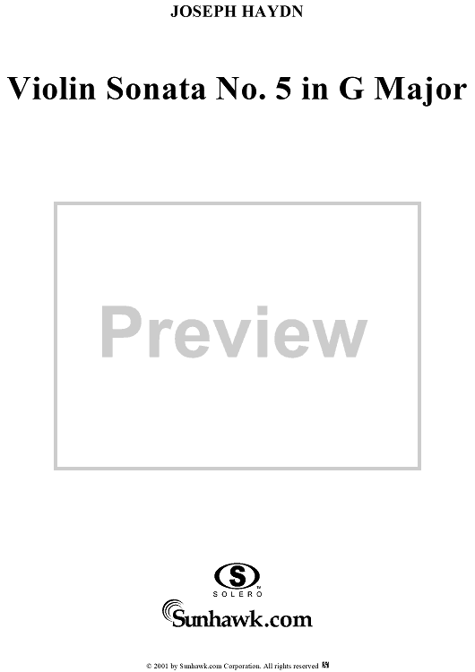 Digital Sheet Music for Violin Sonata No. 5 - Violin by Franz Joseph Haydn scored for Violin/Piano; id:265684