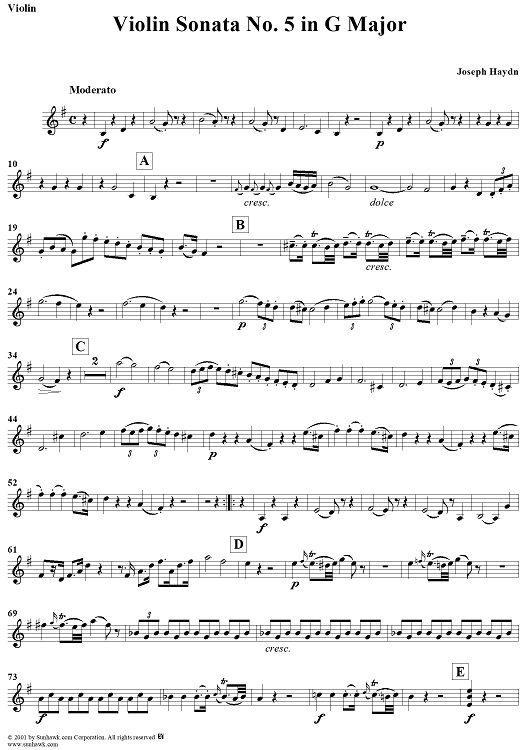 "Violin Sonata No. 5 - Violin" Sheet Music by Franz Joseph Haydn