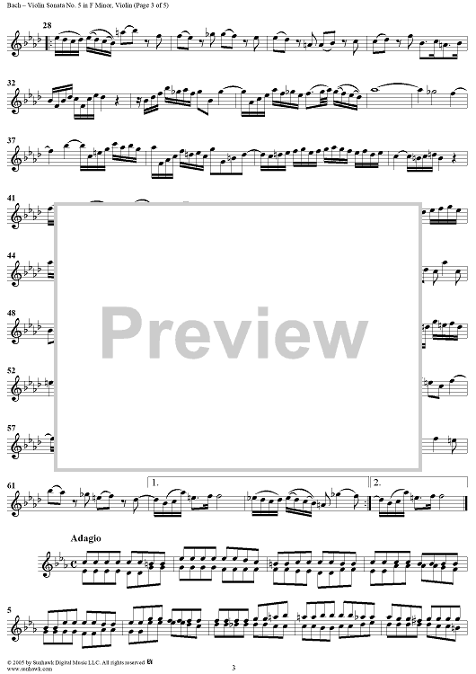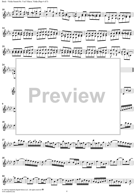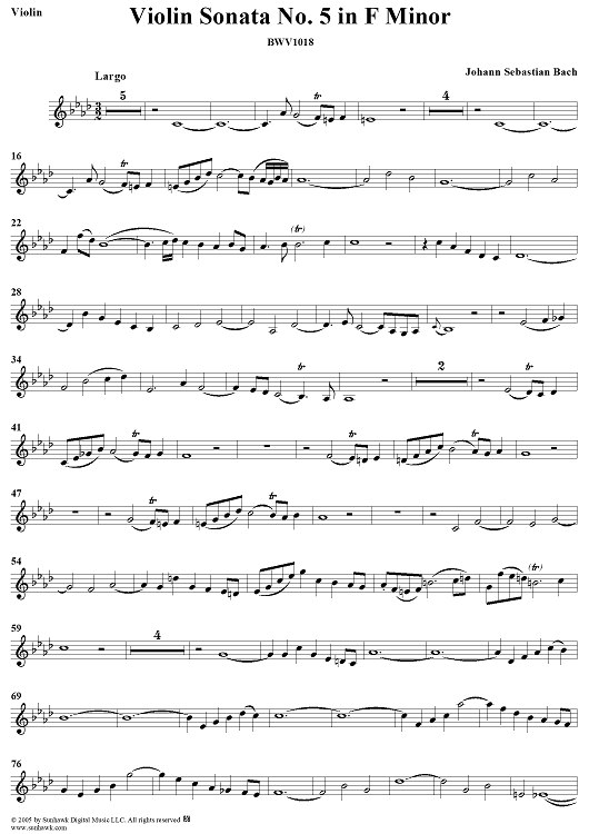 Digital Sheet Music for Violin Sonata No. 5 - Violin by Johann Sebastian Bach scored for Violin/Piano; id:309595