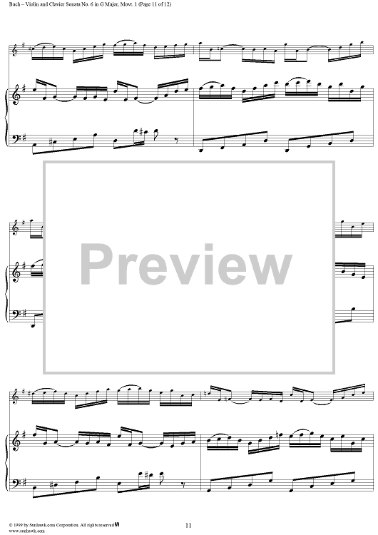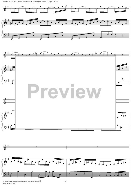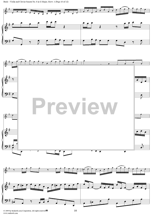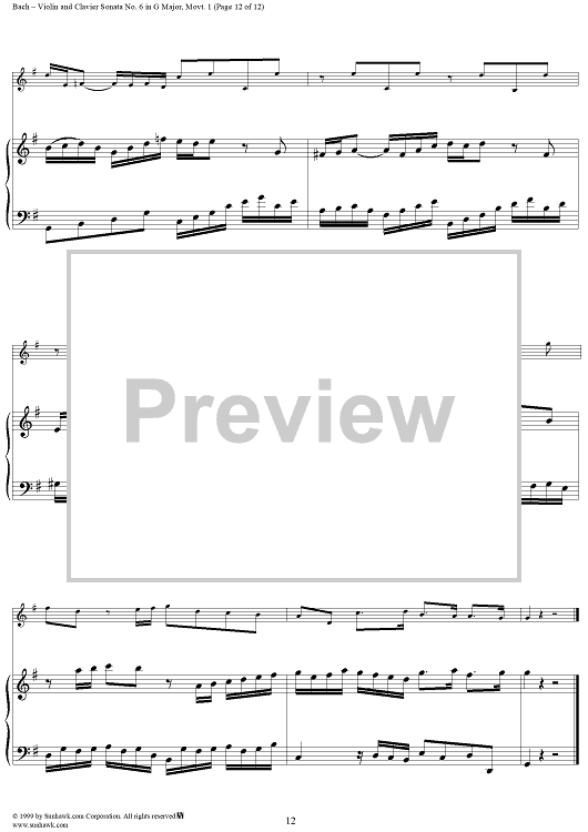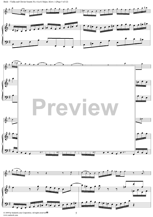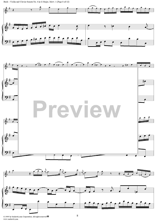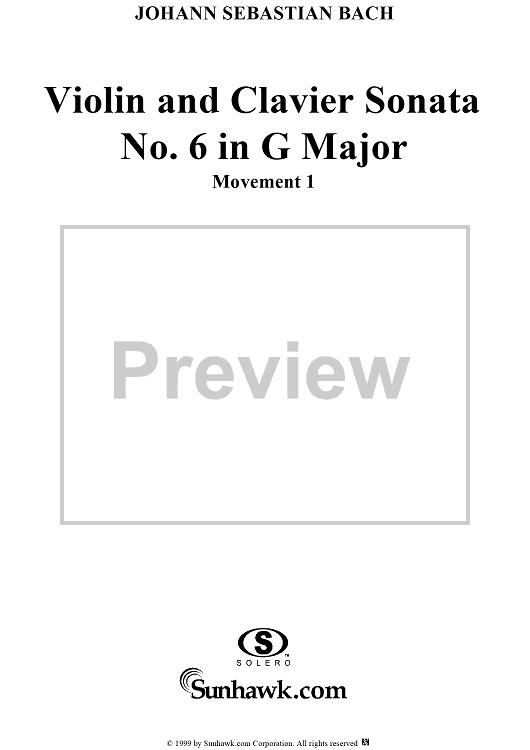 Digital Sheet Music for Violin Sonata No. 6, Movement 1 - Piano Score by Johann Sebastian Bach scored for Violin/Piano; id:119081