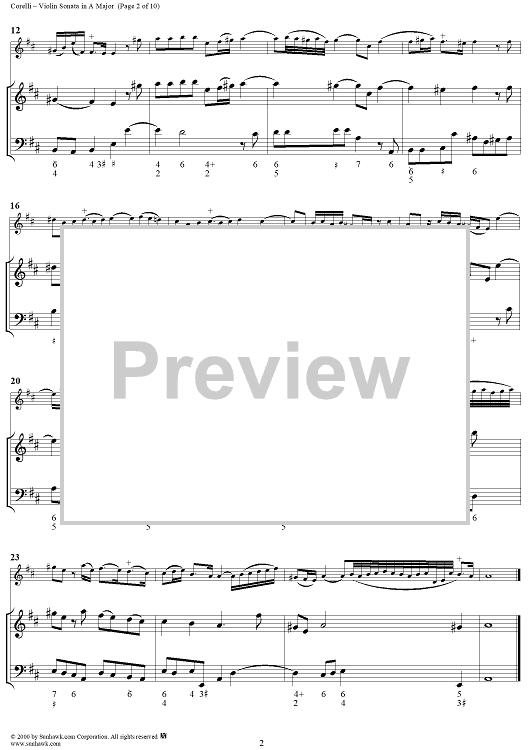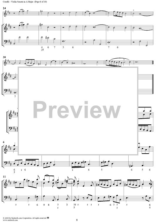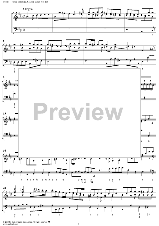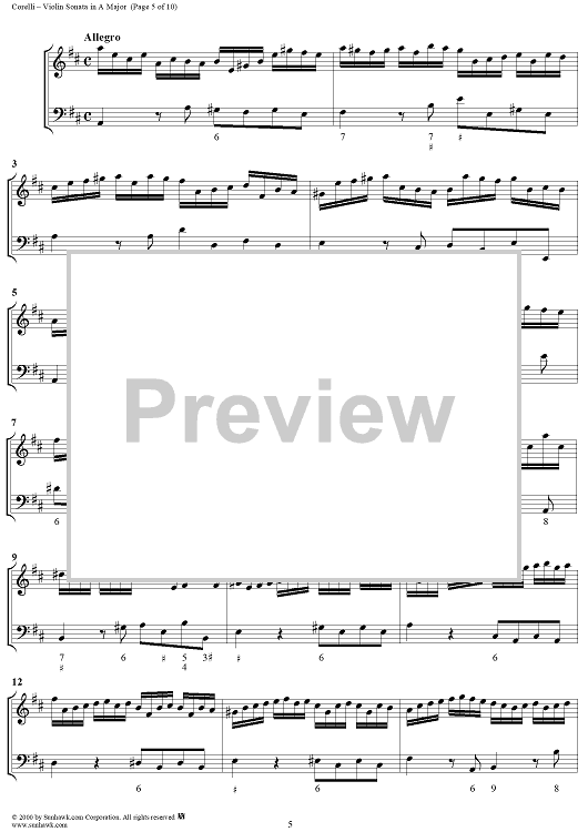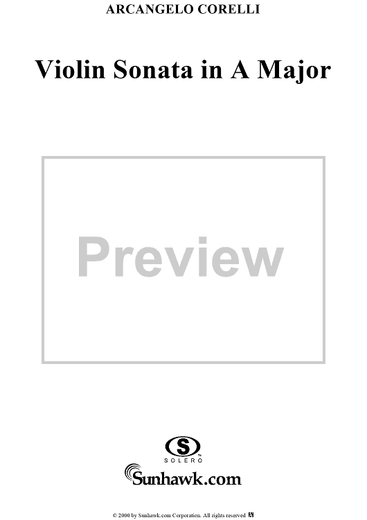 Digital Sheet Music for Violin Sonata No. 6 - Piano Score by Arcangelo Corelli scored for Violin/Continuo; id:186206