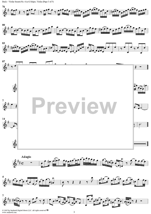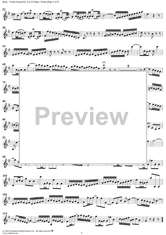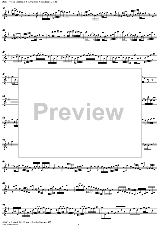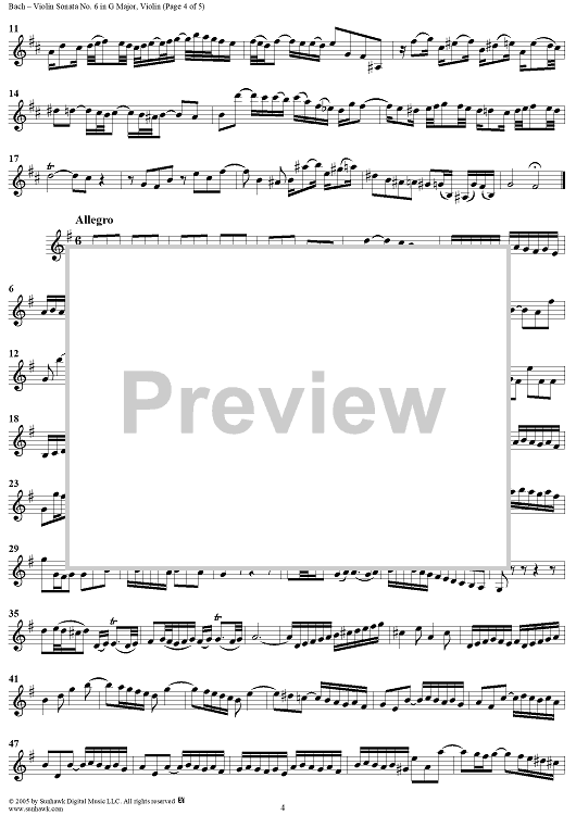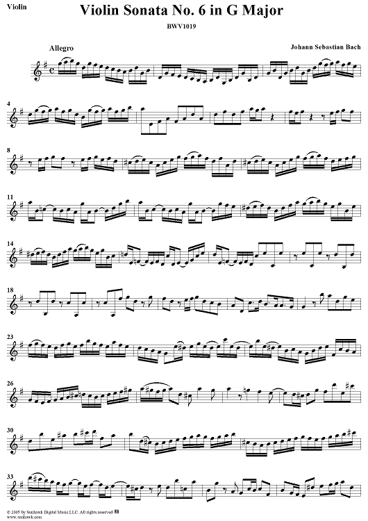 Digital Sheet Music for Violin Sonata No. 6 - Violin by Johann Sebastian Bach scored for Violin/Piano; id:309598