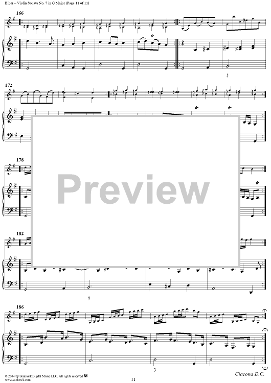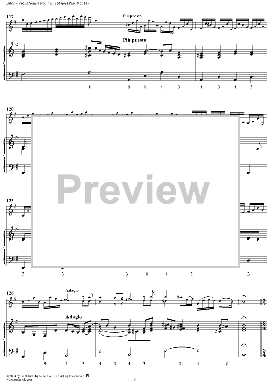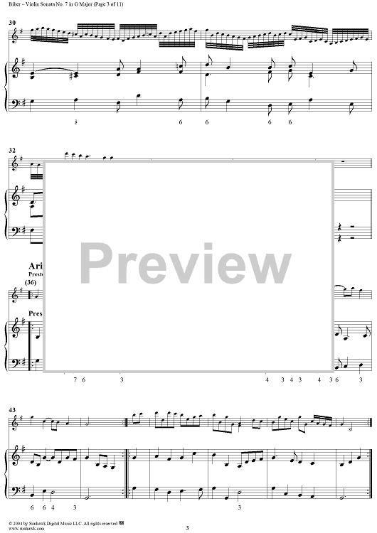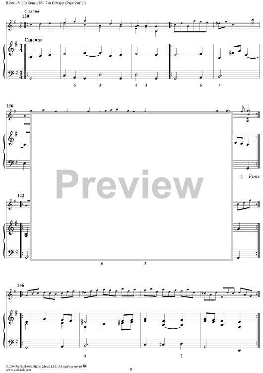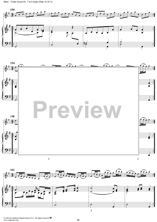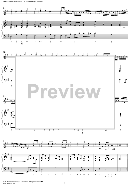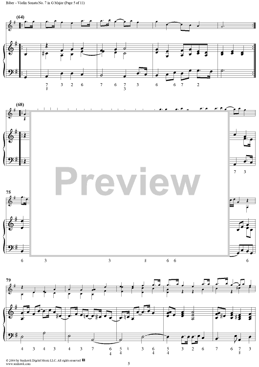 Digital Sheet Music for Violin Sonata No. 7 - Piano Score by Heinrich Franz Biber scored for Violin/Piano; id:298076