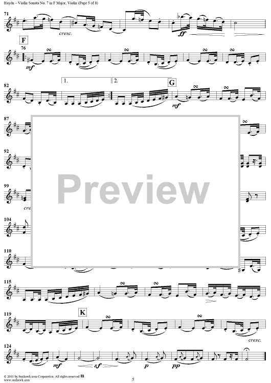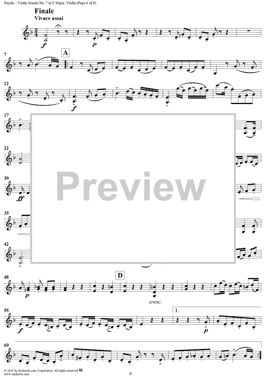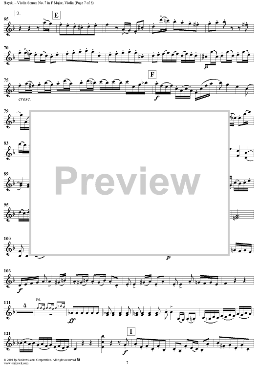 "Violin Sonata No. 7 - Violin" Sheet Music by Franz Joseph Haydn