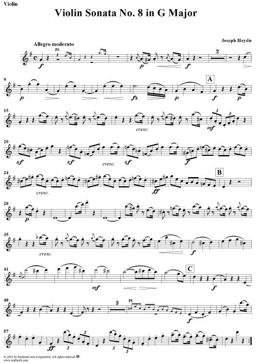 "Violin Sonata No. 8 - Violin" Sheet Music by Franz Joseph Haydn