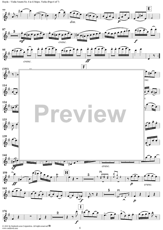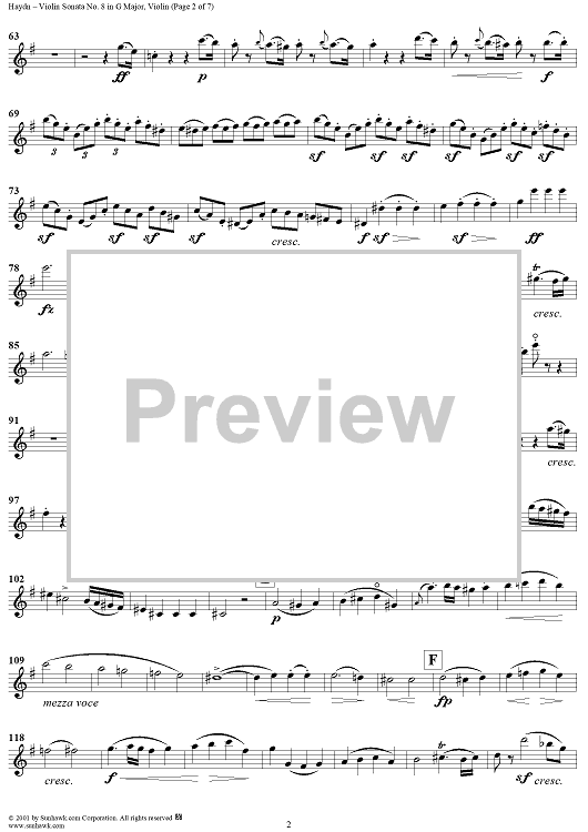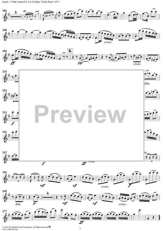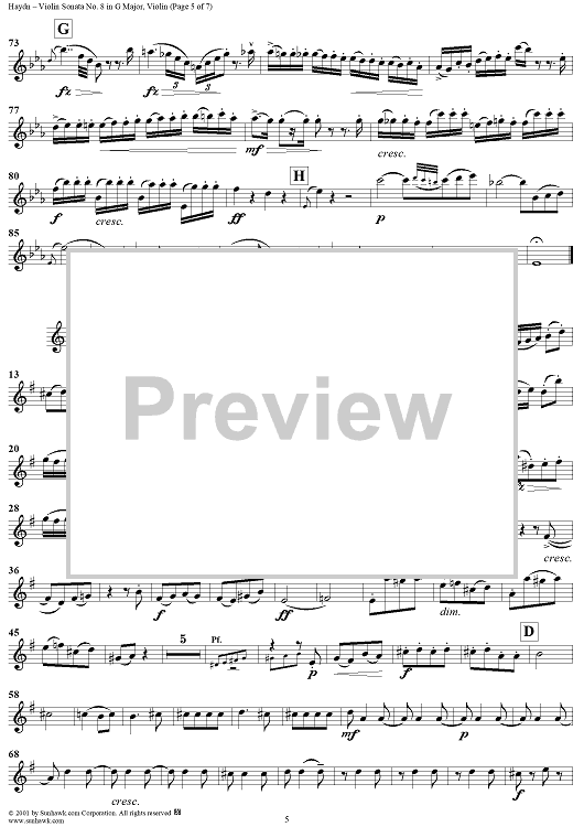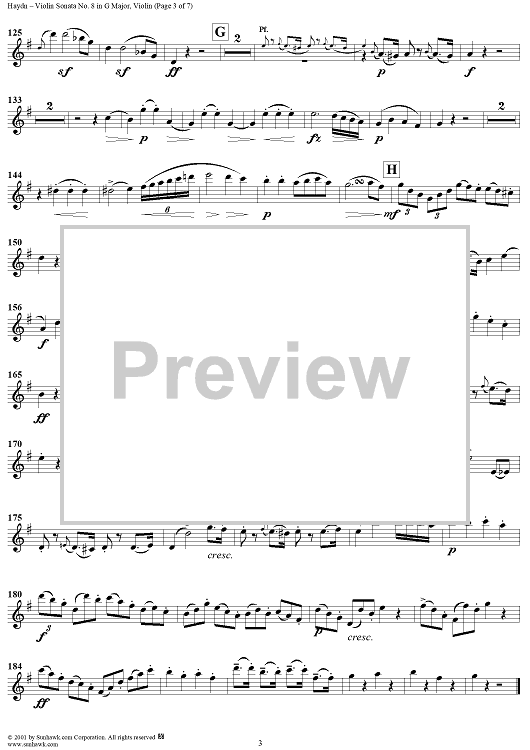 Digital Sheet Music for Violin Sonata No. 8 - Violin by Franz Joseph Haydn scored for Violin/Piano; id:265997