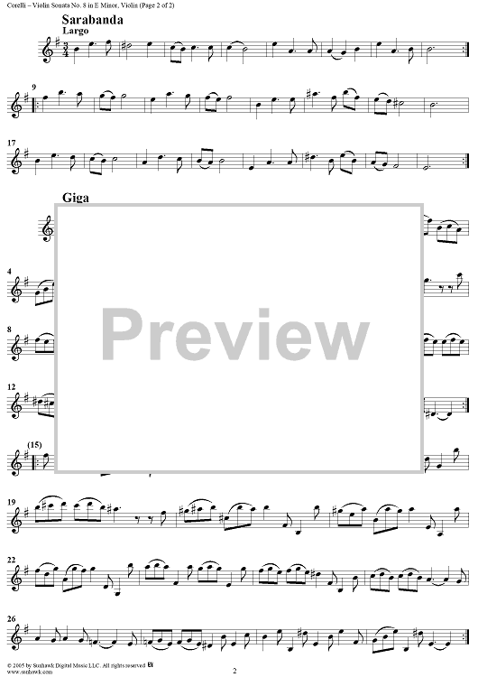 Digital Sheet Music for Violin Sonata No. 8 - Violin by Arcangelo Corelli scored for Violin/Continuo; id:309741