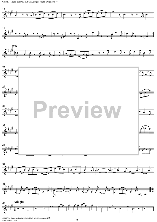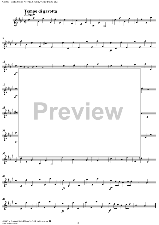 Digital Sheet Music for Violin Sonata No. 9 - Violin by Arcangelo Corelli scored for Violin/Continuo; id:309742