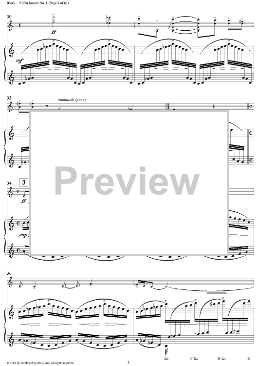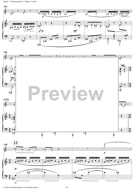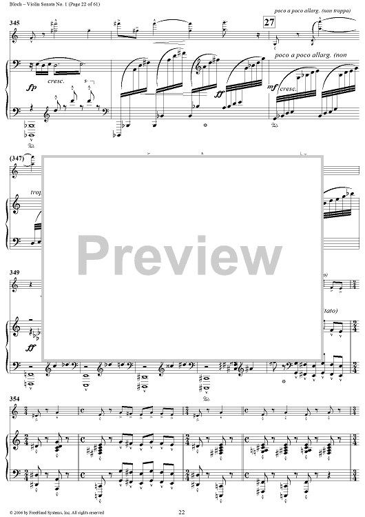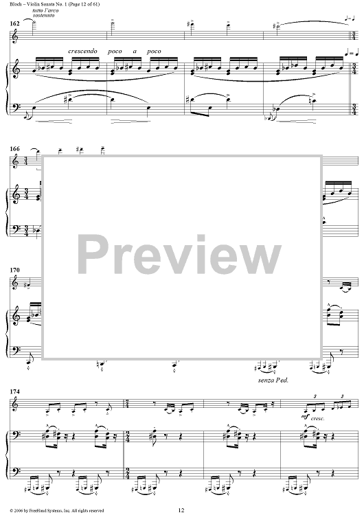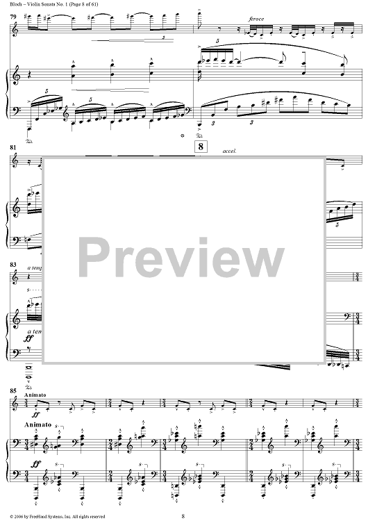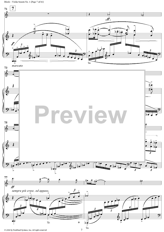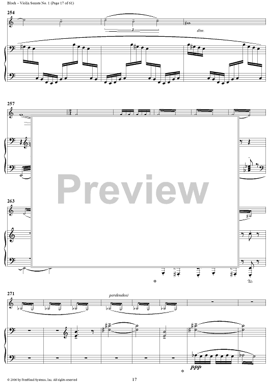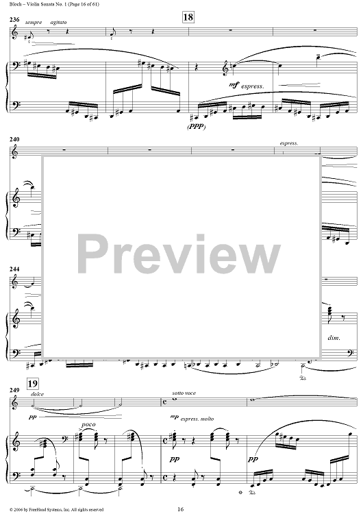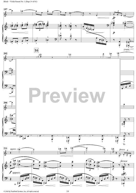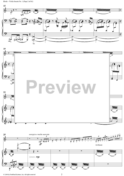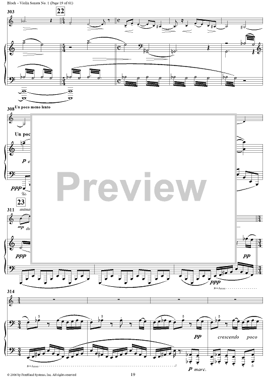 Digital Sheet Music for Violin Sonata No.1 - Piano Score by , Ernest Bloch scored for Violin/Piano; id:317962