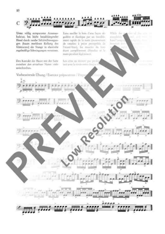 The Russian cellist Stutschewsky (1891-1982) has developed an extremely effective exercising programme for the right hand based on melodic and harmonic patterns.