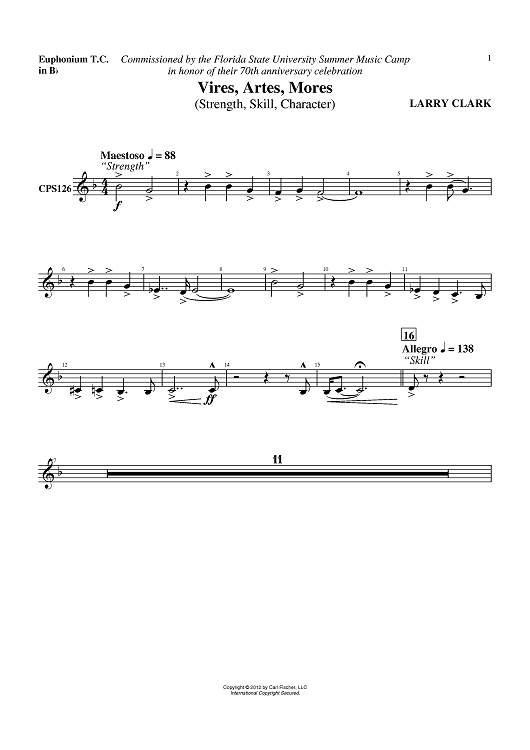 Digital Sheet Music for Vires, Artes, Mores (Strength, Skill, Character) - Euphonium TC by Larry Clark scored for Concert Band; id:430589