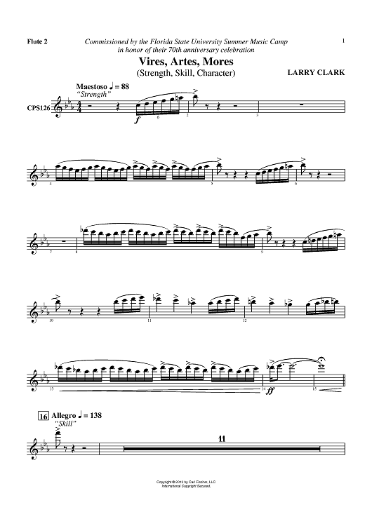 Digital Sheet Music for Vires, Artes, Mores (Strength, Skill, Character) - Flute 2 by Larry Clark scored for Concert Band; id:430571