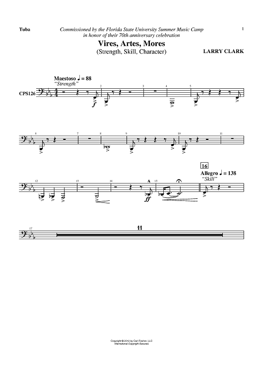 Digital Sheet Music for Vires, Artes, Mores (Strength, Skill, Character) - Tuba by Larry Clark scored for Concert Band; id:430591