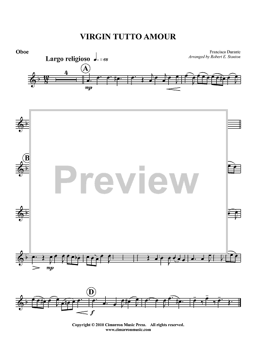 Digital Sheet Music for Virgin Tutto Amour - Oboe by Francesco Durante, Robert E. Stanton scored for Woodwind Trio; id:426303