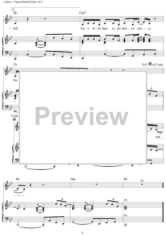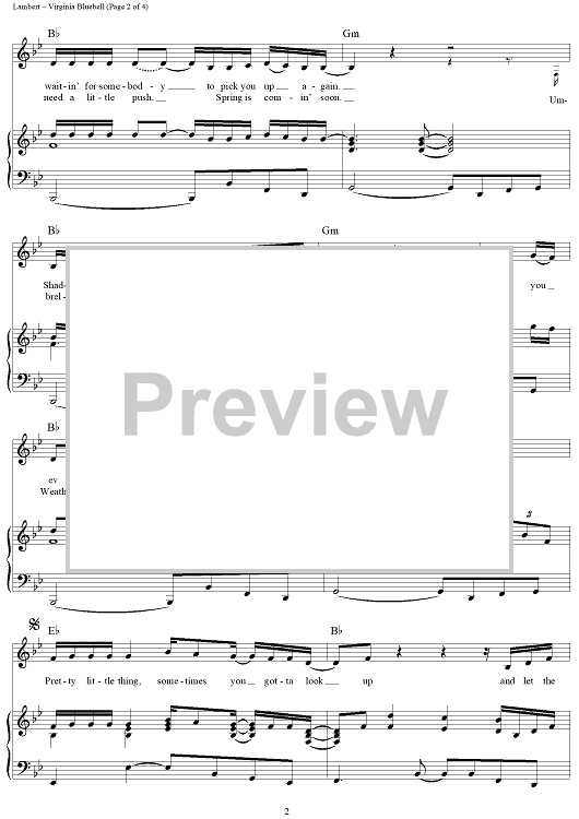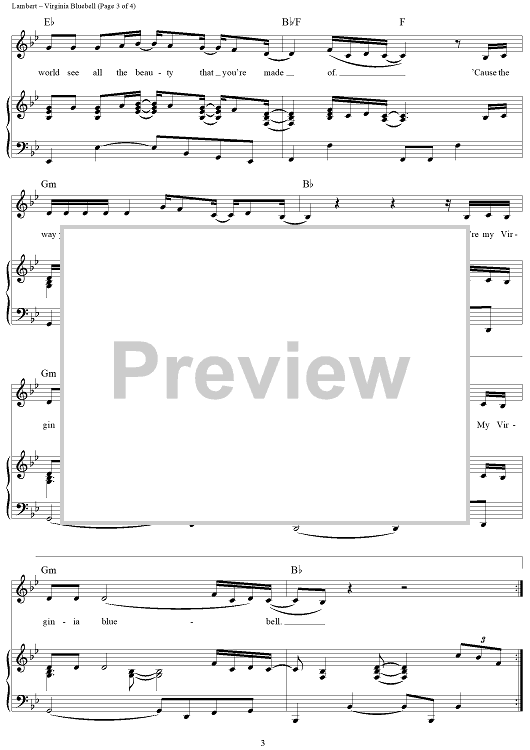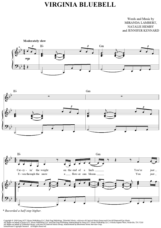 Digital Sheet Music for Virginia Bluebell by Miranda Lambert, Natalie Hemby, Jennifer Kennard scored for Piano/Vocal/Chords; id:442971