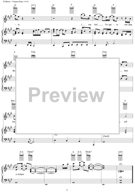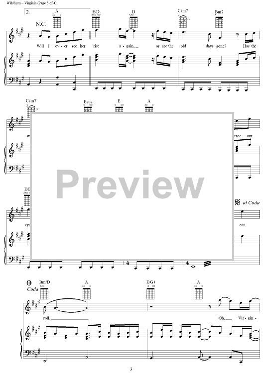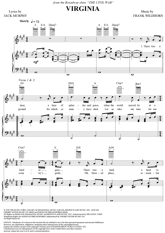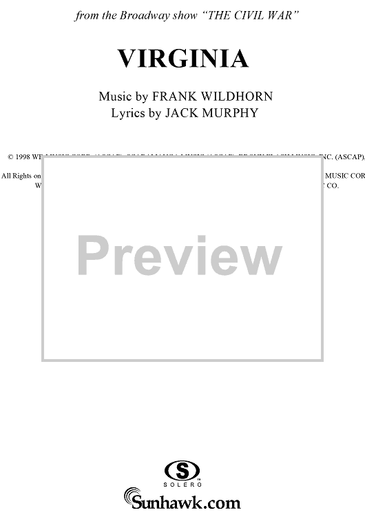 Digital Sheet Music for Virginia by Frank Wildhorn, Jack Murphy, Gene Miller scored for Piano/Vocal/Chords; id:113990