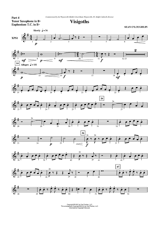 "Visigoths - Part 4 Tenor Sax / Euphonium TC" Sheet Music by Sean O'Loughlin