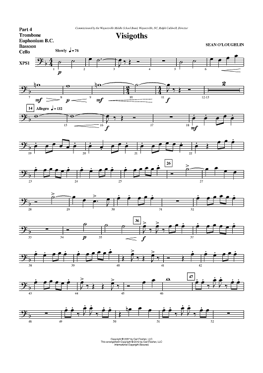 Digital Sheet Music for Visigoths - Part 4 Trombone / Euphonium BC / Bassoon / Cello by Sean O'Loughlin scored for Concert Band; id:431248