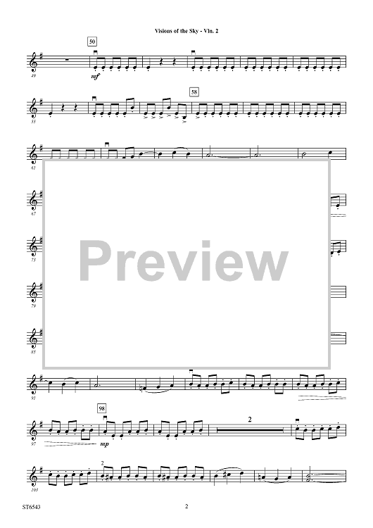Digital Sheet Music for Visions of the Sky - Violin 2 by Adrian B. Sims scored for String Orchestra; id:501009