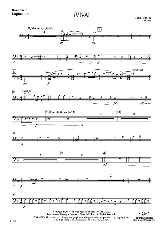 Digital Sheet Music for ¡Viva! - Baritone / Euphonium by Jack Wilds scored for Concert Band; id:501686