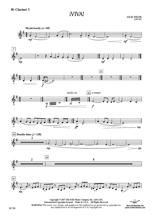 Digital Sheet Music for ¡Viva! - Bb Clarinet 3 by Jack Wilds scored for Concert Band; id:501672