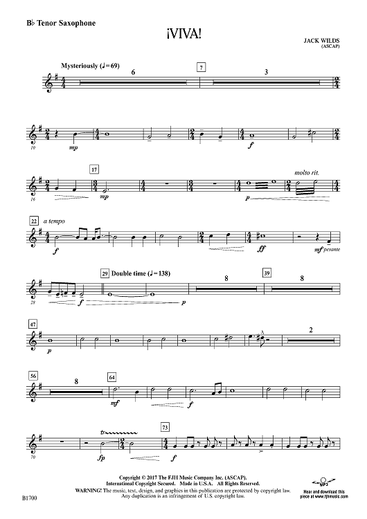 Digital Sheet Music for ¡Viva! - Bb Tenor Sax by Jack Wilds scored for Concert Band; id:501676