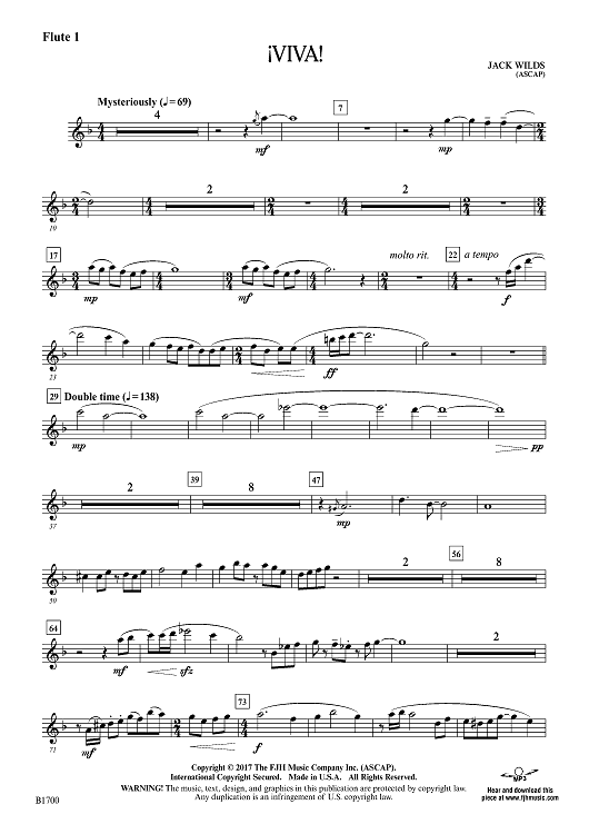 Digital Sheet Music for ¡Viva! - Flute 1 by Jack Wilds scored for Concert Band; id:501666