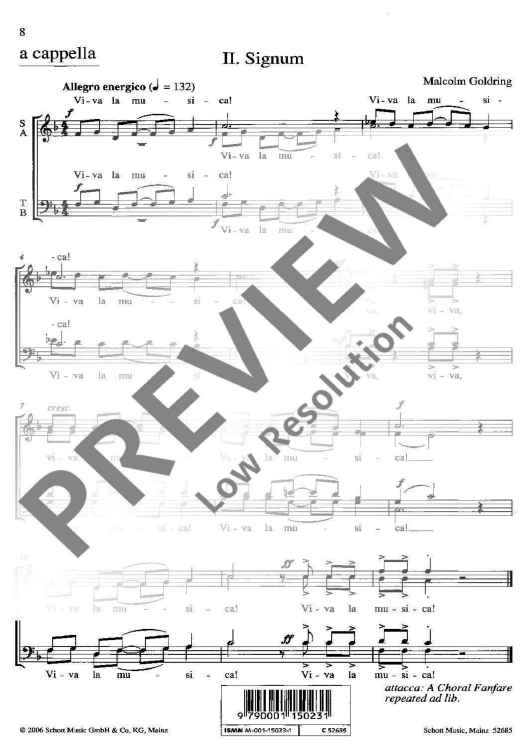 This title brings together 'A Choral Fanfare' and 'Signum' of the festival 'Europa Cantat 2006'. The two short telling pieces can also be performed separately a cappella, but the use of brass achieves an even greater effect.