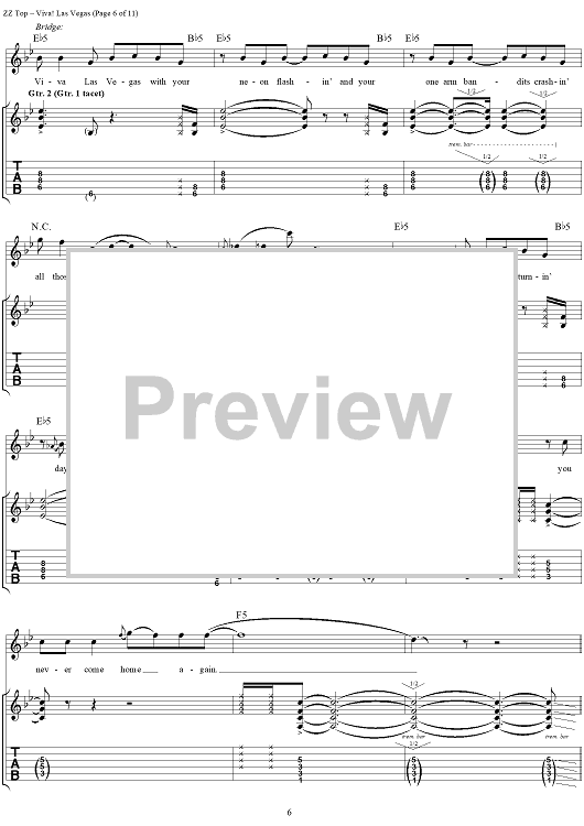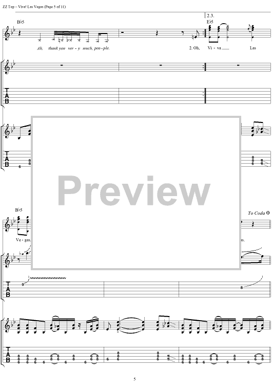 "Viva! Las Vegas" Sheet Music by ZZ Top