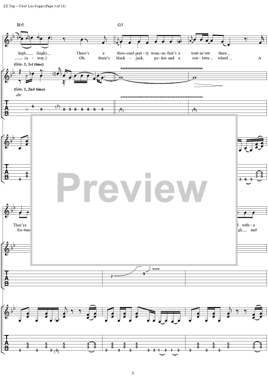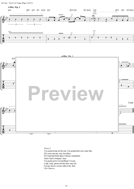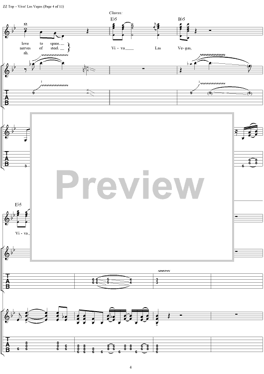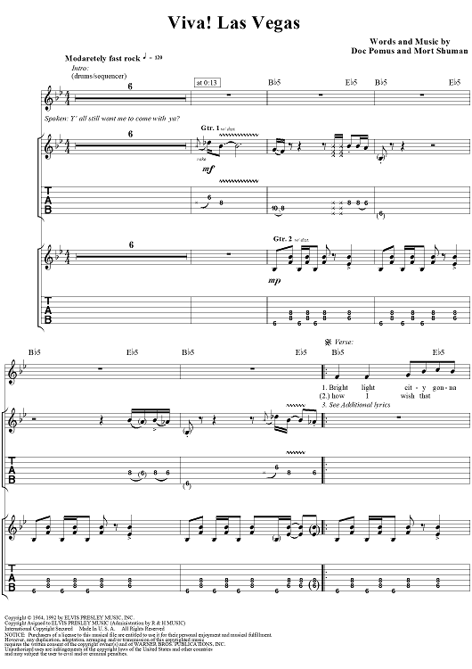 Digital Sheet Music for Viva! Las Vegas by Doc Pomus, Mort Shuman, ZZ Top scored for Guitar Tab/Vocal; id:111930