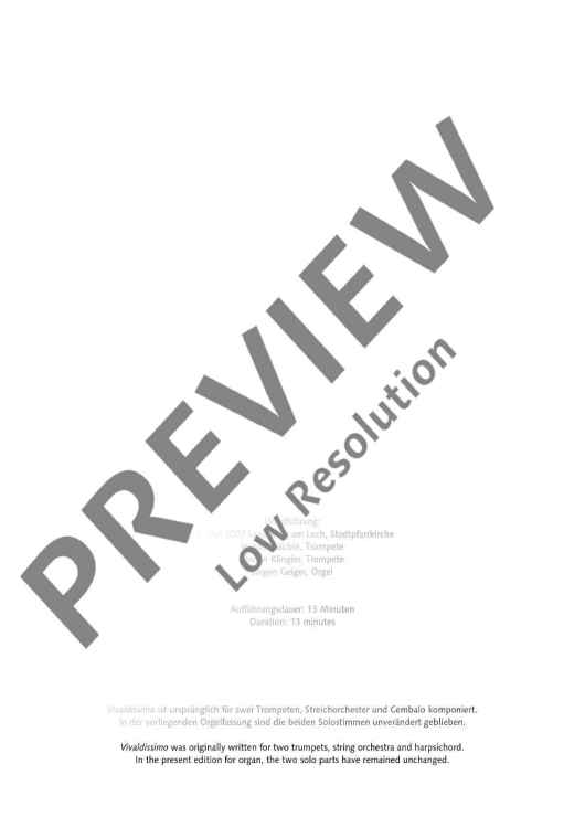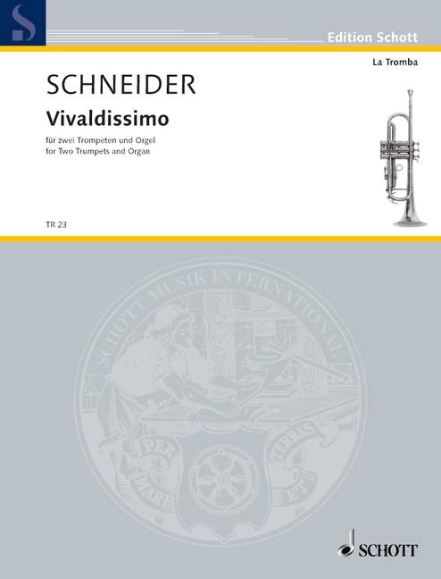 The composer Enjott Schneider moves very successfully between music for film and television, on the one hand, and opera, symphony and chamber music, on the other hand. When writing this piece, he was inspired by Vivaldi's famous Double Concerto for two trumpets which he cleverly brought into our time. Baroque elements, minimal music and twelve-note music meet here, full of spirit and passion for virtuoso activity. In addition to the original version (for two trumpets, string orchestra and harpsichord), there is now available an arrangement for two trumpets and organ, an instrumentation which is becoming more and more popular in church concerts today.