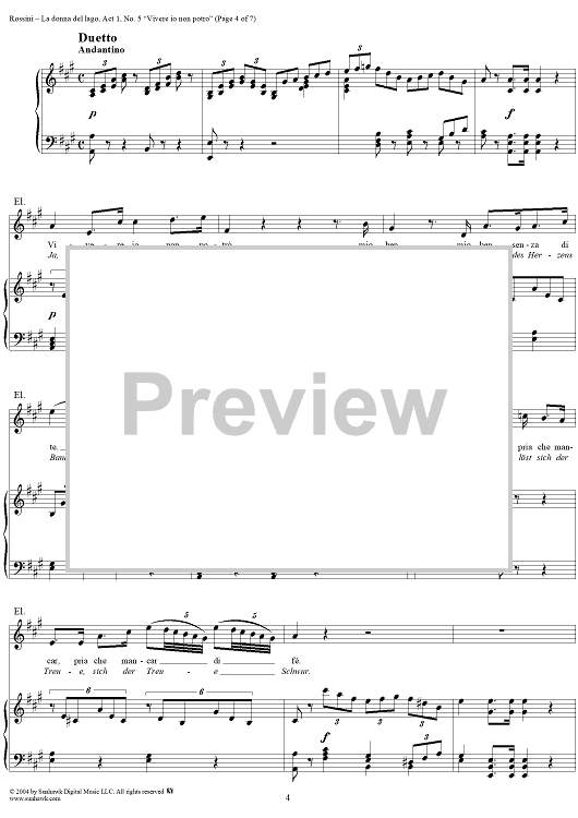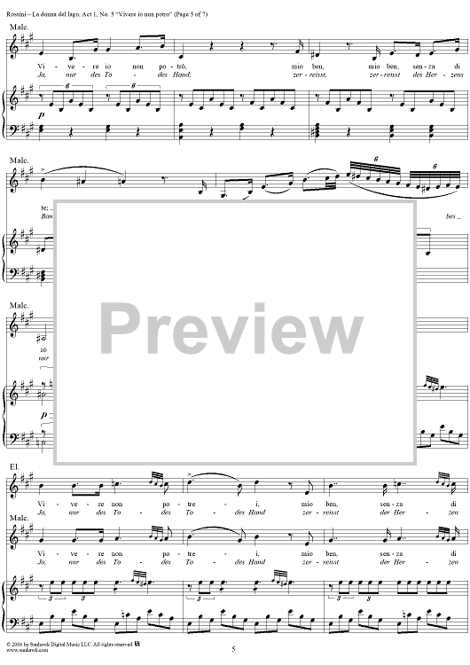 Digital Sheet Music for Vivere io non potrò: No. 5 from "La donna del lago", Act 1 - Score by Gioachino Rossini scored for Voice/Piano; id:303441