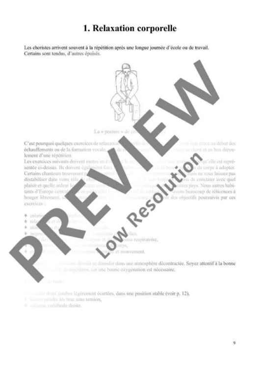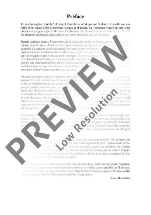 The human voice is the most sensitive and delicate of all instruments. Only with careful and responsible use over the years can it be kept healthy and strong. Choral voice training and these warm-up exercises can make a valuable and long-lasting contribution to achieving this goal. The importance of these warm-up exercises must repeatedly be explained to singers. They are just as important as the warm-ups an athlete does before training or competition. Even if some individuals do not notice any great progress in the beginning, the small improvements each singer makes will considerably enhance the sound of the chorus as a whole. Signs of fatigue will become less frequent and the volume and sound of the chorus will gain intensity, homogeneity and versatility. Moreover, the voice will become stronger, smoother and more resilient. It is also important for a chorus director to work intensely on his own voice, experimenting with all of the suggested exercises several times himself first and using only those exercises he feels comfortable with when appearing in front of the chorus.