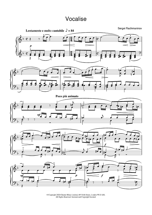 "Vocalise" Sheet Music by Sergei Rachmaninoff