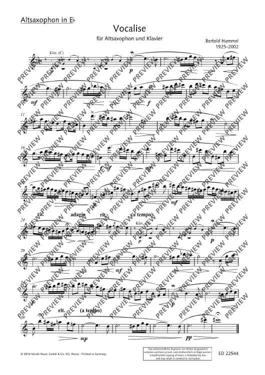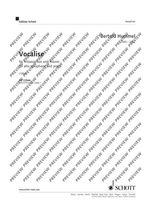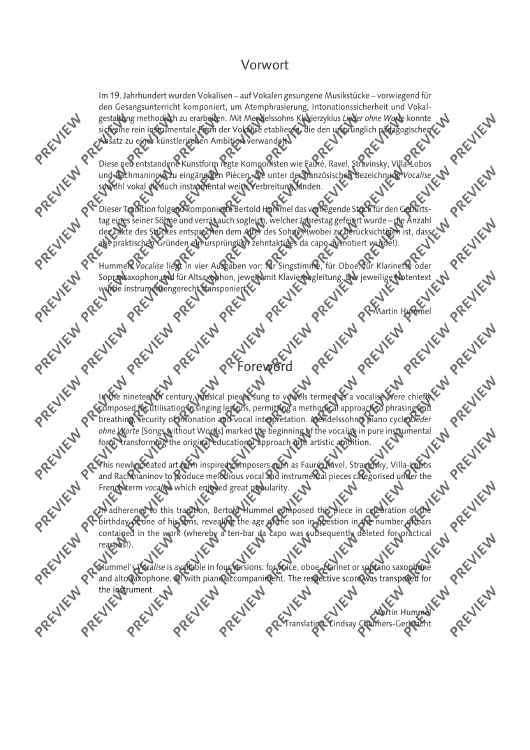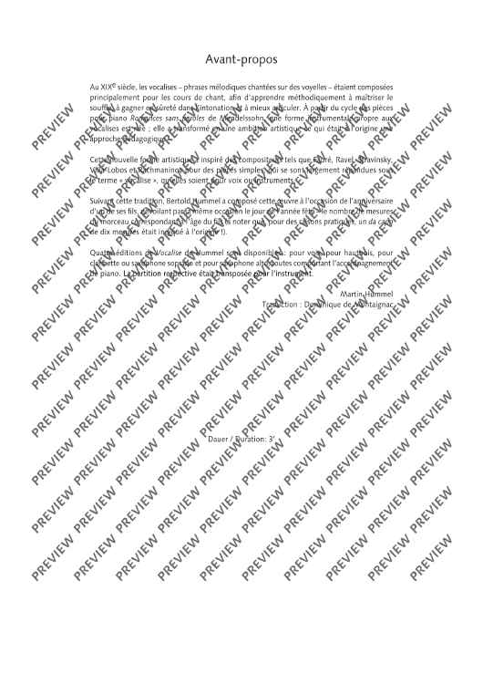 Hummel's Vocalise is available in different editions (each with piano accompaniment) and, following 19th-century tradition, is conducive to breath phrasing, confidence in intonation and the methodological development of vocal and instrumental style.
