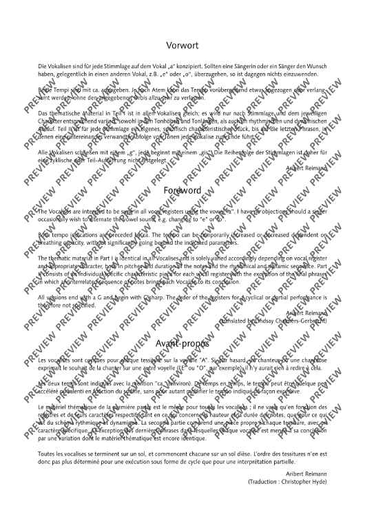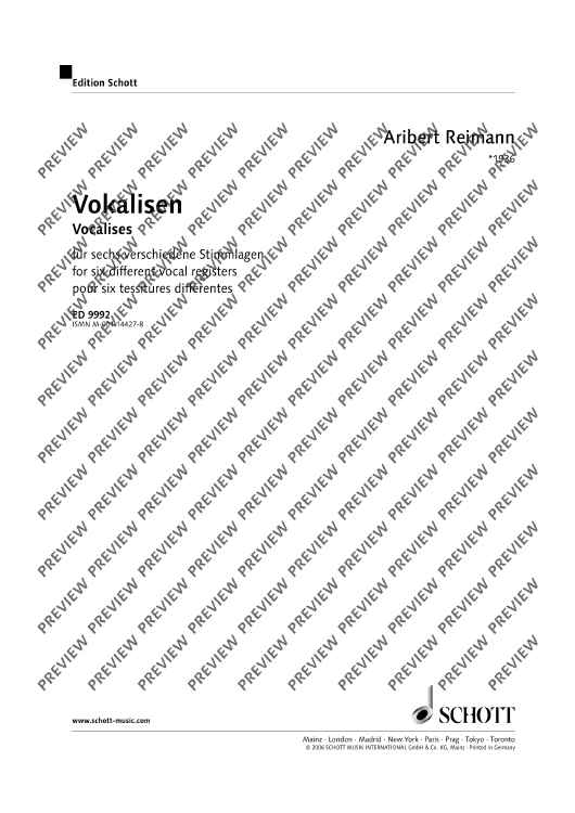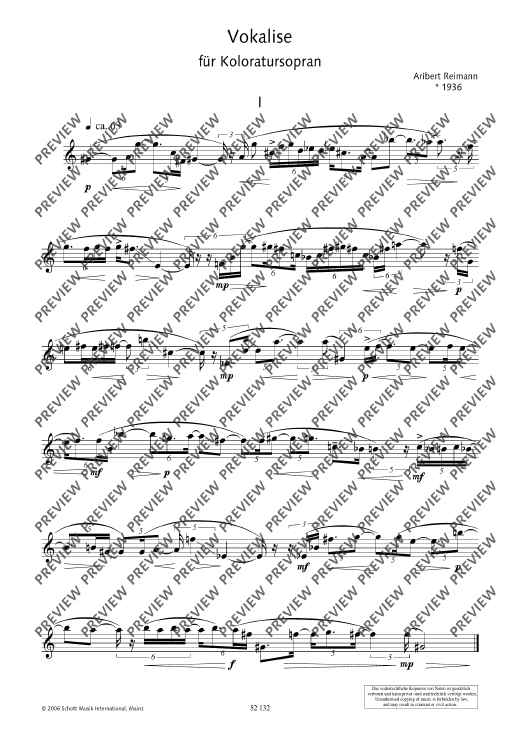 Digital Sheet Music for Vocalises by Aribert Reimann scored for Coloratura Soprano Solo, Soprano Solo, Mezzo-Soprano Solo, Tenor Solo, Baritone Solo and Bass Solo; id:477268