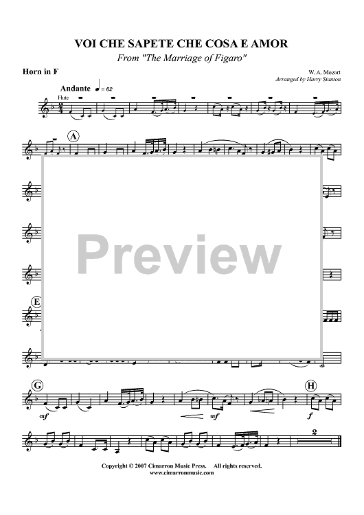 "Voi che sapete che cosa e amor - Horn in F" Sheet Music by Wolfgang Amadeus Mozart