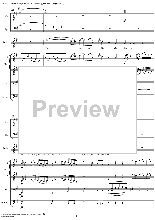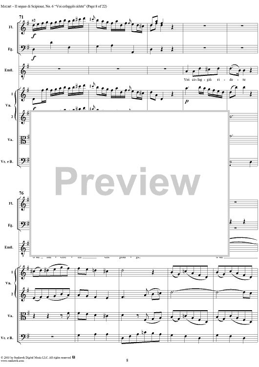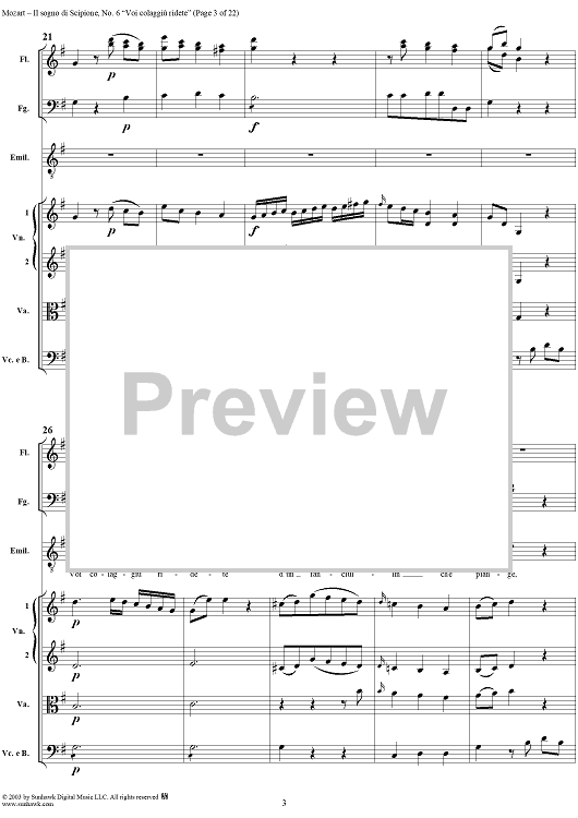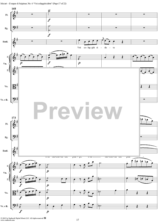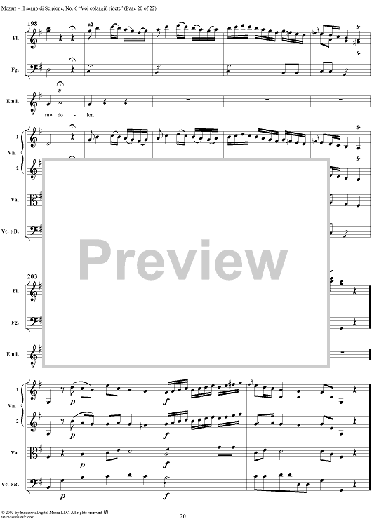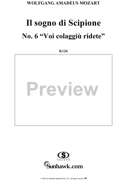Digital Sheet Music for Voi colagiù ridete (Aria), No. 6 from "Il Sogno di Scipione" - Full Score by Wolfgang Amadeus Mozart scored for Soli/SATB/Orchestra; id:291179
