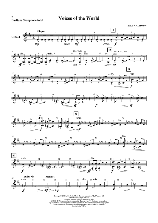 "Voices of the World - Baritone Sax" Sheet Music by Bill Calhoun