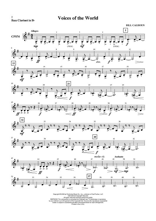"Voices of the World - Bass Clarinet in B-flat" Sheet Music by Bill Calhoun