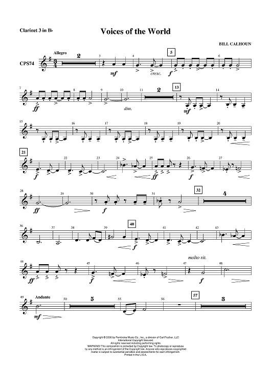 Digital Sheet Music for Voices of the World - Clarinet 3 in B-flat by Bill Calhoun scored for Concert Band; id:408642