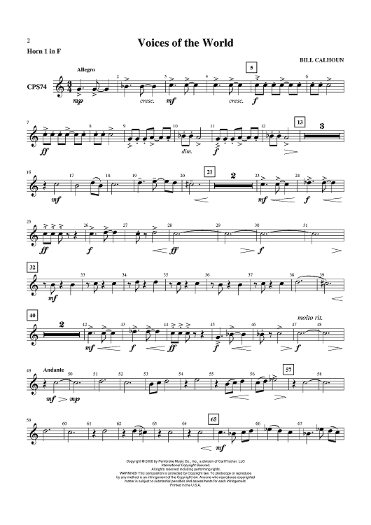 Digital Sheet Music for Voices of the World - Horn in F 1 by Bill Calhoun scored for Concert Band; id:408652