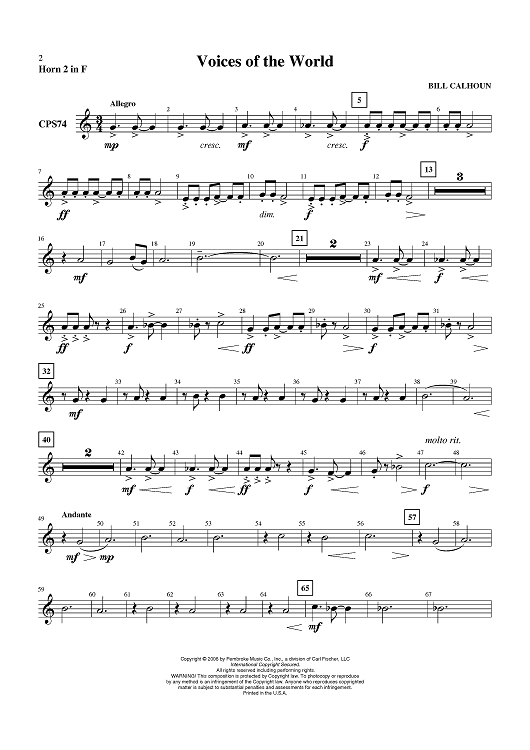 "Voices of the World - Horn in F 2" Sheet Music by Bill Calhoun