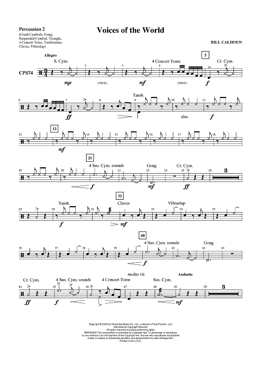 Digital Sheet Music for Voices of the World - Percussion 2 by Bill Calhoun scored for Concert Band; id:408662