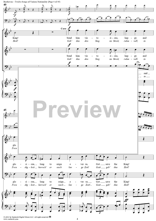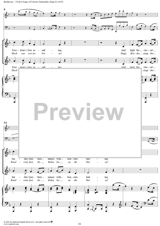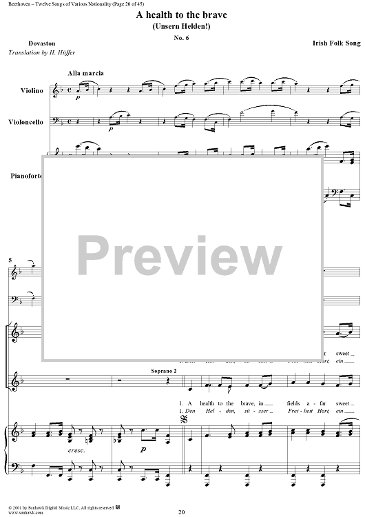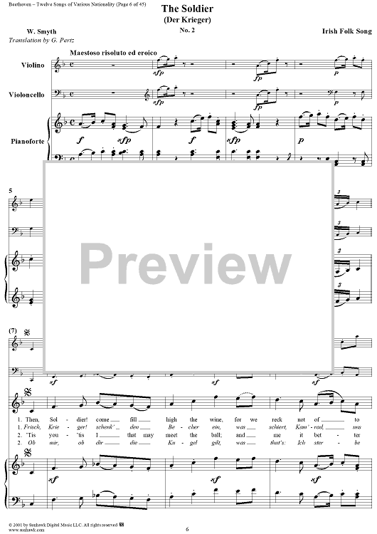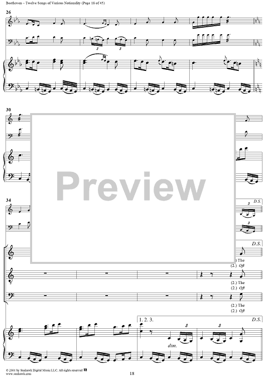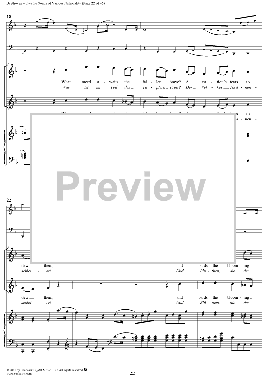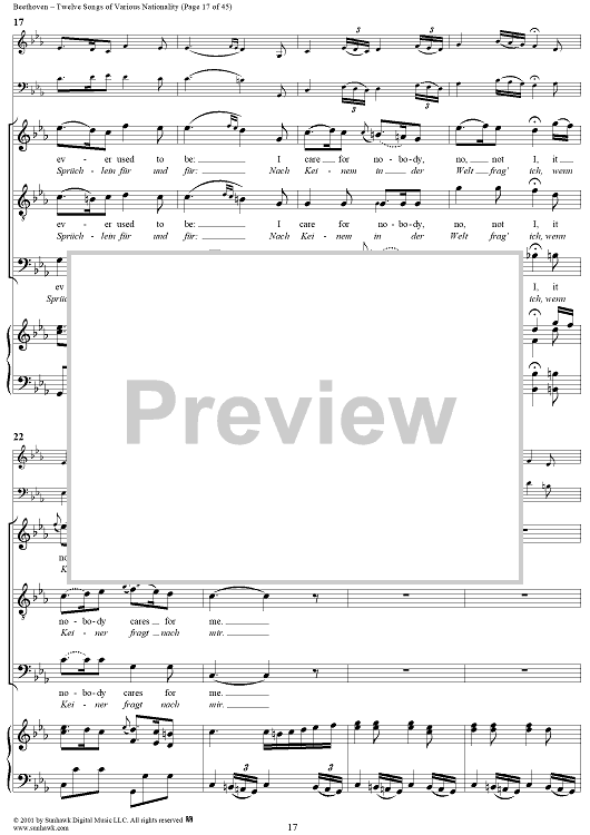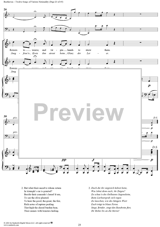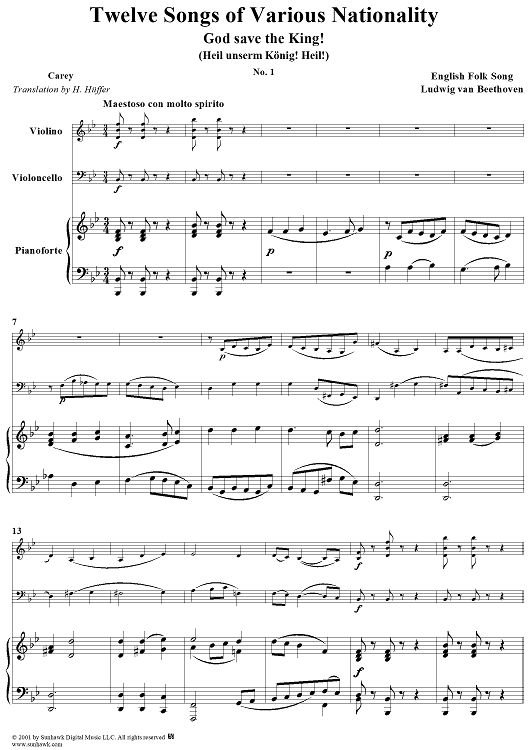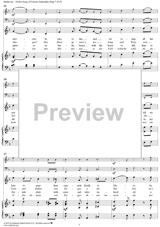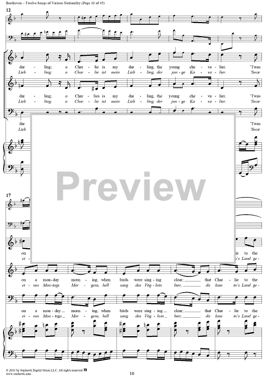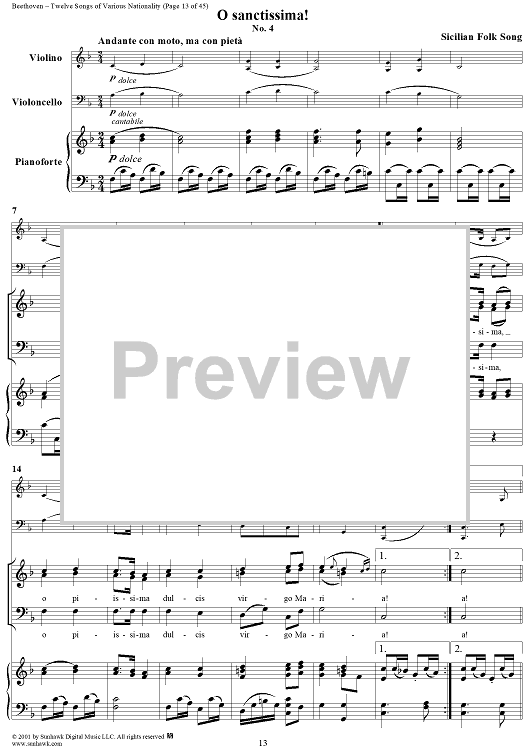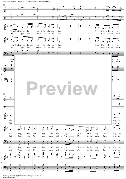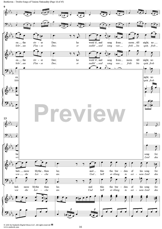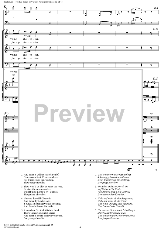 Digital Sheet Music for Volkslieder (12 Songs of various nationality) by Ludwig van Beethoven scored for STB Choir/Violin/Cello/Piano; id:255436
