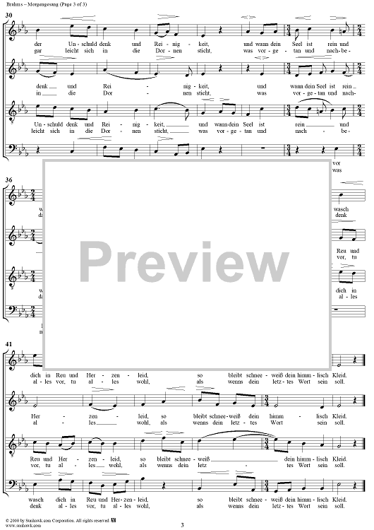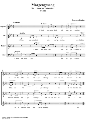 Digital Sheet Music for Volkslieder No. 12 ("Morgensesang") by , Johannes Brahms scored for Four-part Mixed Chorus; id:241332