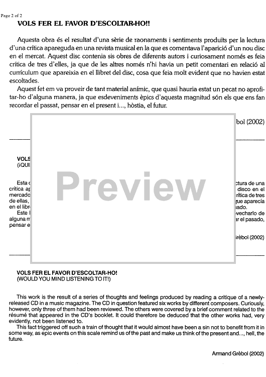 "Vols fer el favor d'escoltar-ho!! - Preface" Sheet Music by Armand Grèbol